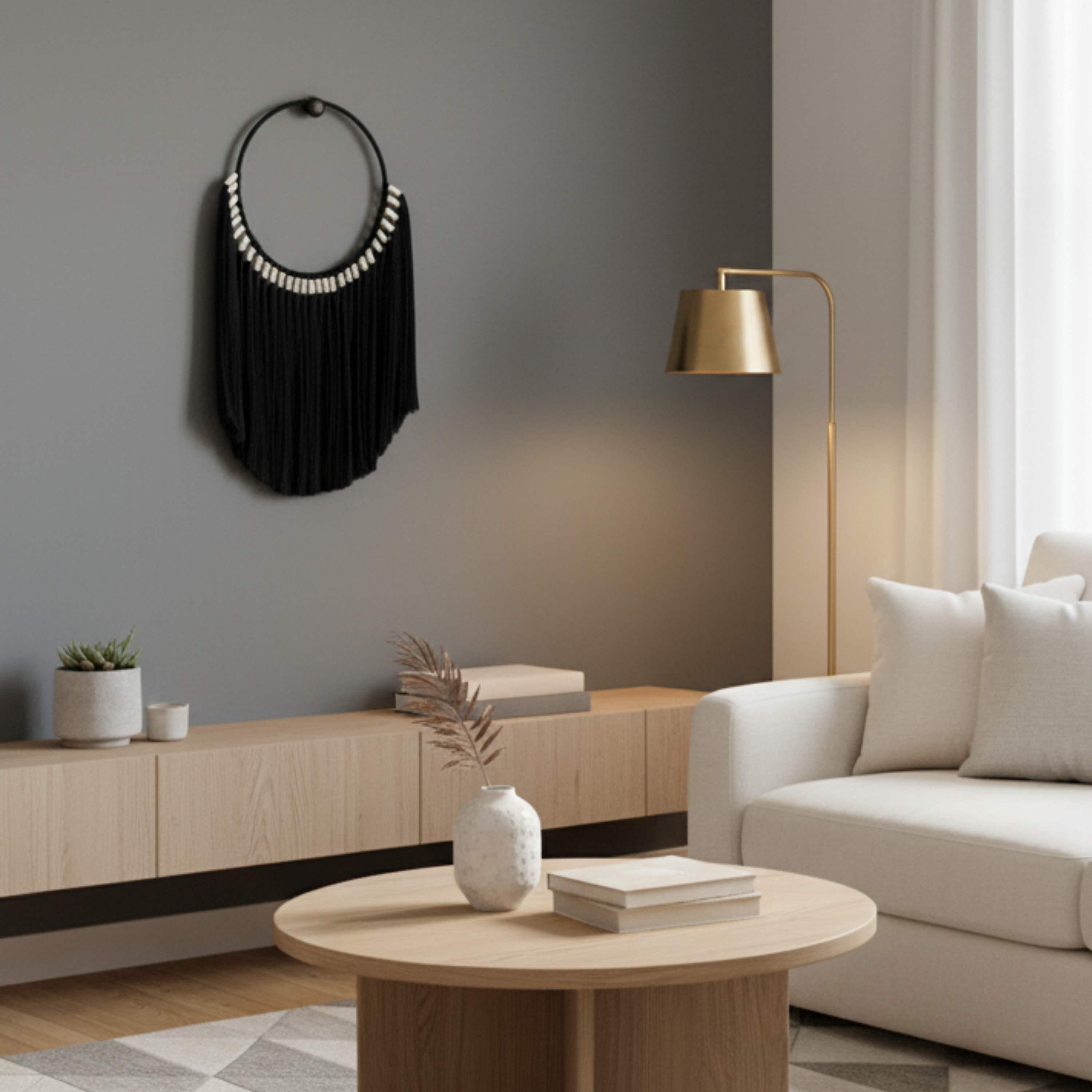 ¡Ésta bonita decoración de pared, con su combinación de materiales,  aportará un toque  tropical y  bohemio  a  tu interior!