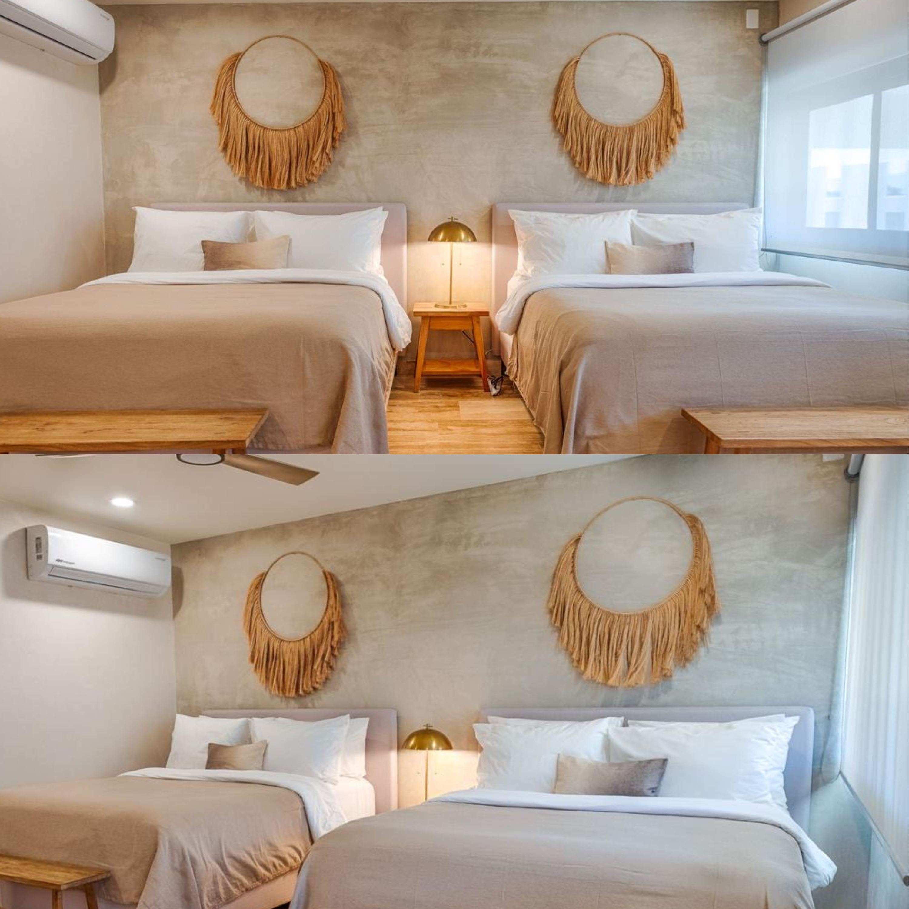 ¡Ésta bonita decoración de pared, con la combinación de materiales,  aportará un toque  tropical y  bohemio tu interior!