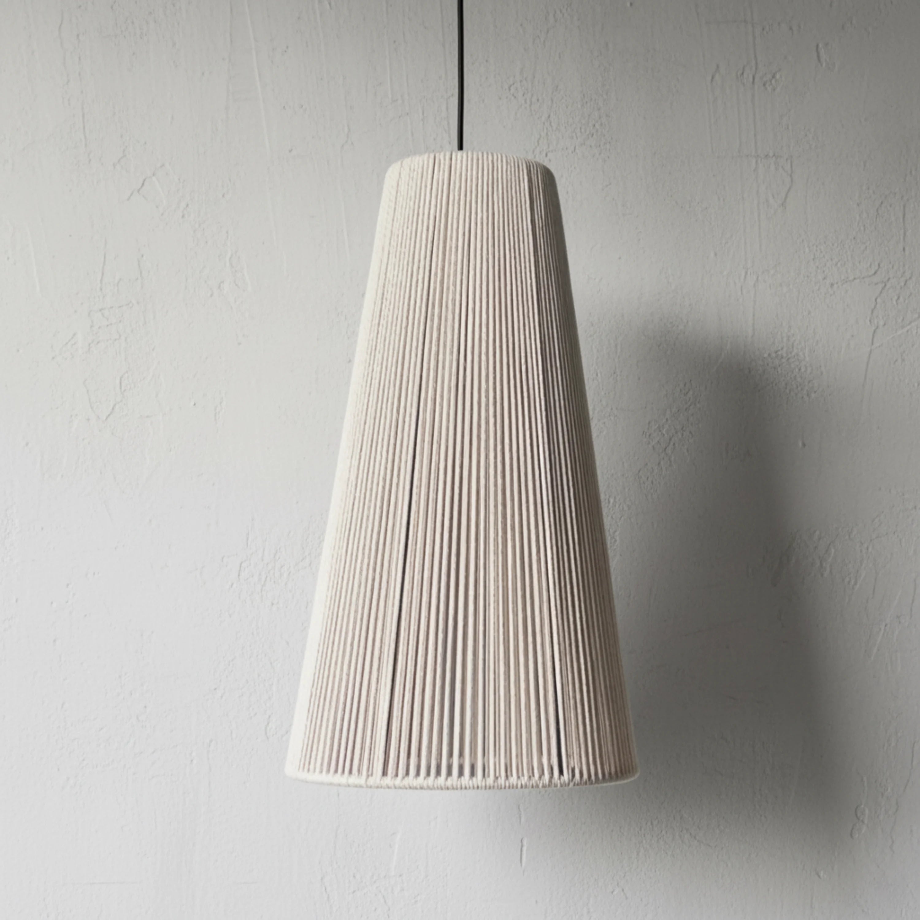 Nuestra pantalla para lámpara GEOMÉTRICA. Está tejido a mano con hilos de nylon, fibra natural en una estructura de herrería.