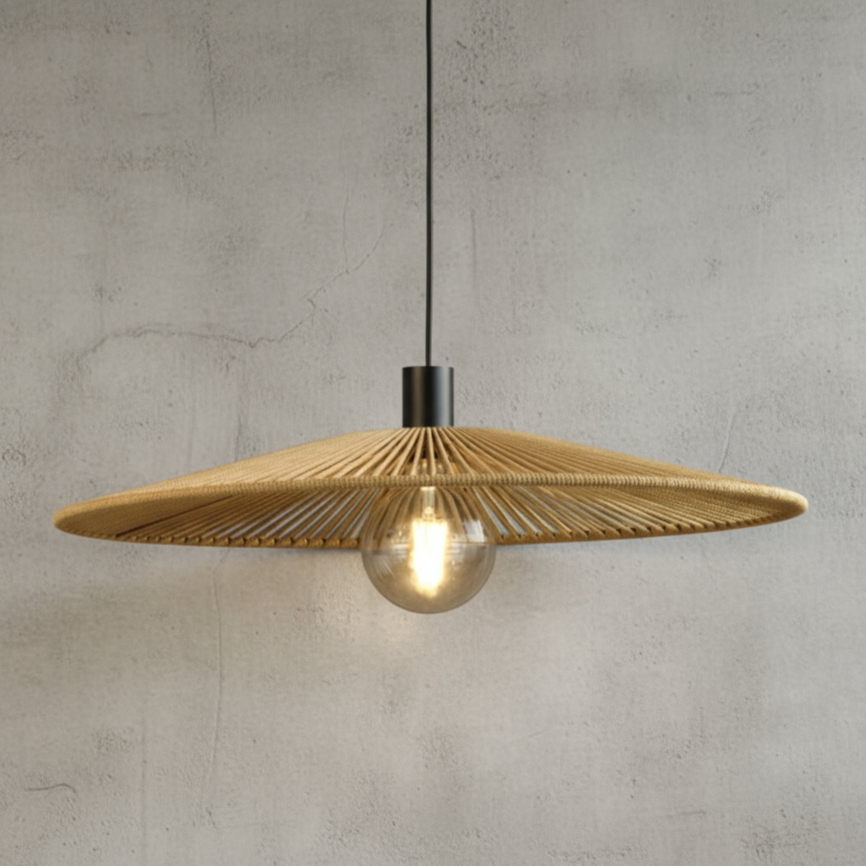 Nuestra pantalla para lámpara NAAY. Está tejido a mano con hilo, fibra muy resistente en una estructura de herrería.