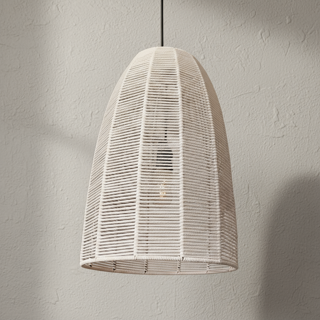 Nuestra pantalla para lámpara PANAL. Está tejida a mano con hilos de nylon, fibra natural en una estructura de herrería.