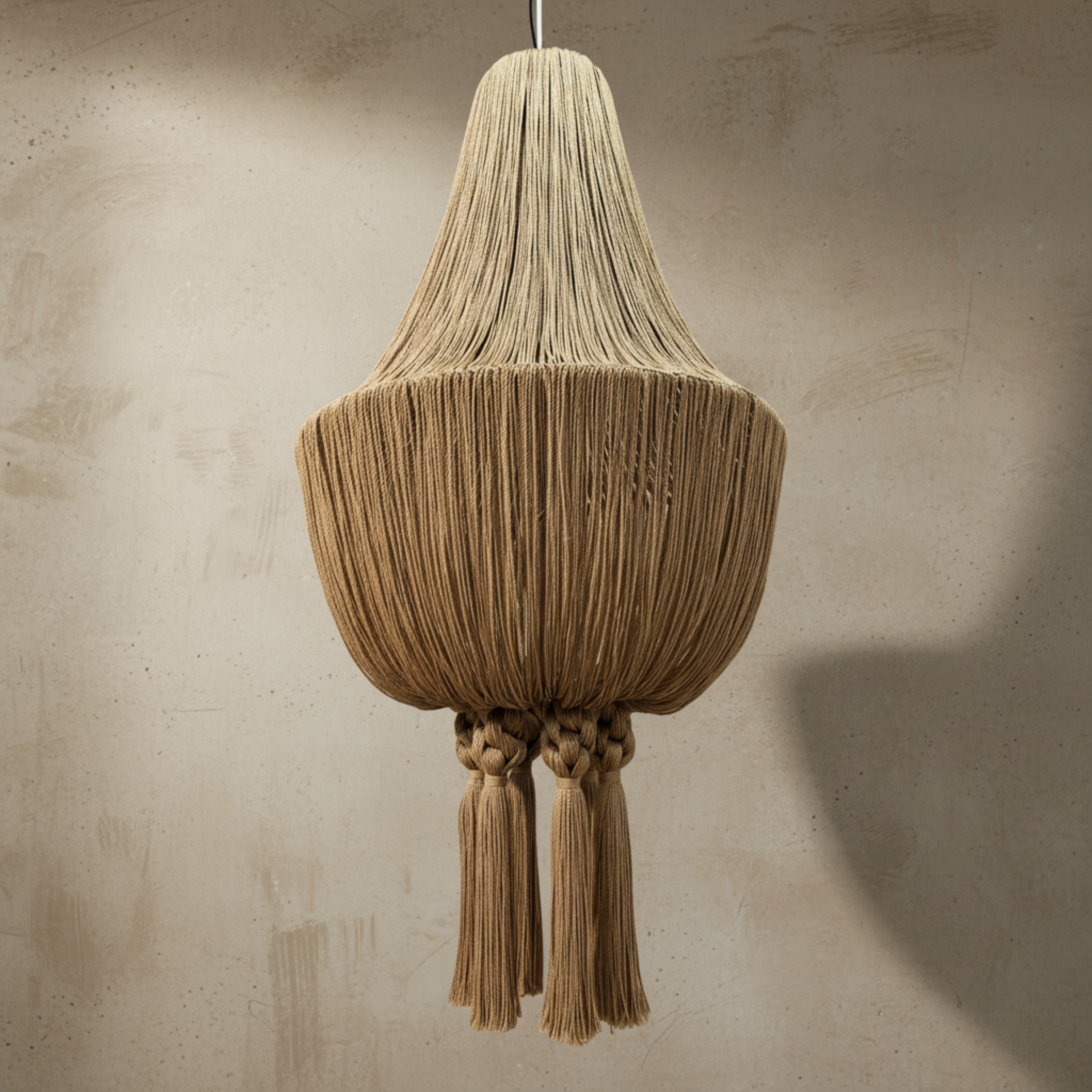 Nuestra pantalla para lámpara Yucatán . Está hecha a mano con hilo de Nylon, fibra resistente con estructura de herrería.